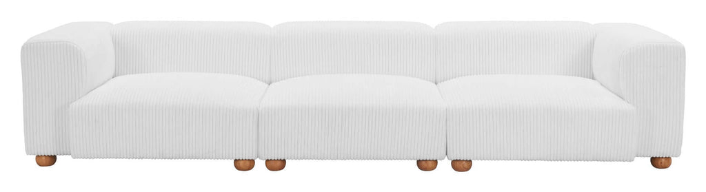 Sink into unparalleled comfort with the Tayte White Corduroy Deep Seated Modular Sofa 150". Designed for expansive living, this oversized sectional combines soft, luxurious corduroy fabric with a sleek modern silhouette—making it the ultimate statement piece for stylish relaxation.