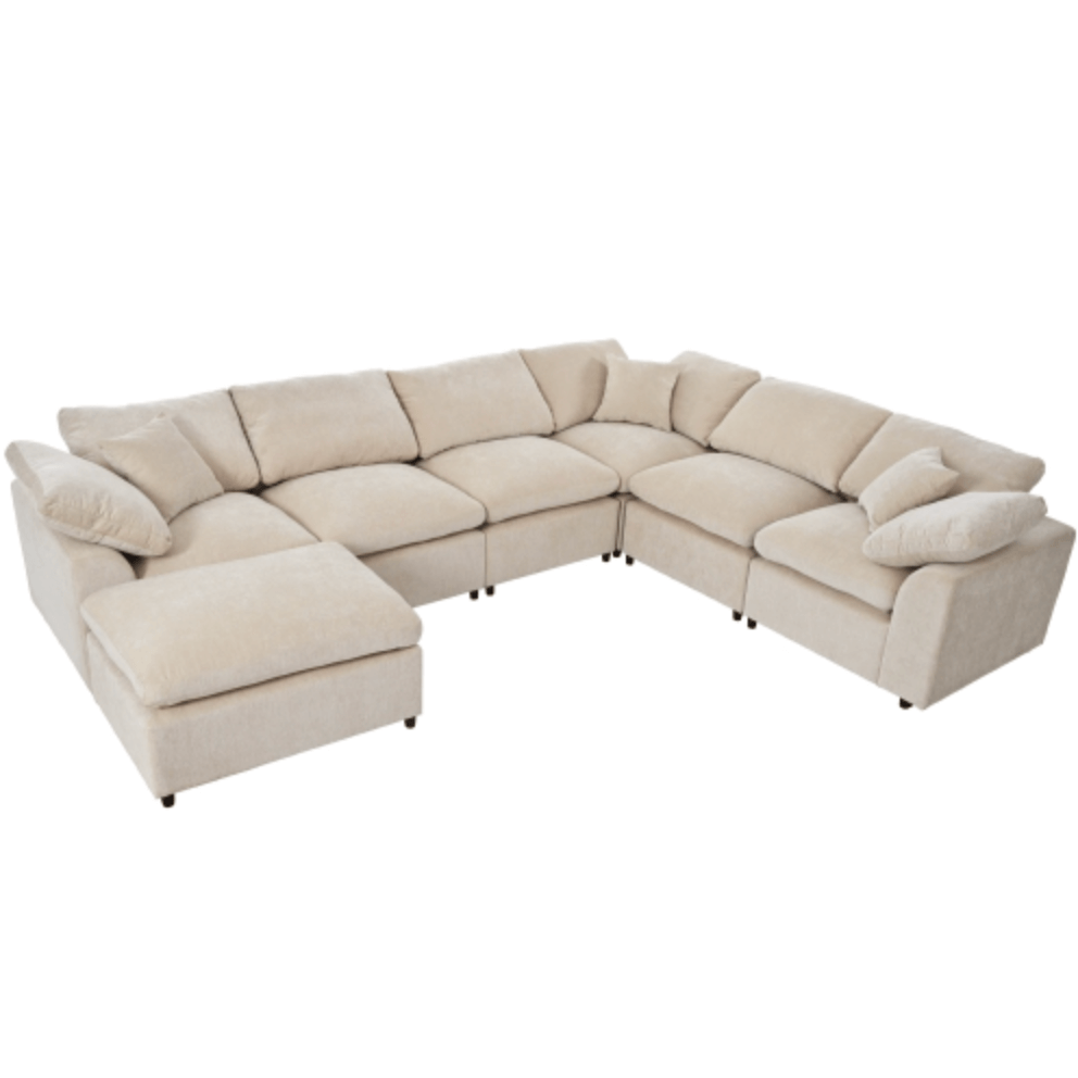 Modern Modular U-Shaped Sectional Sofa – 129"W (Available in Gray or Beige)