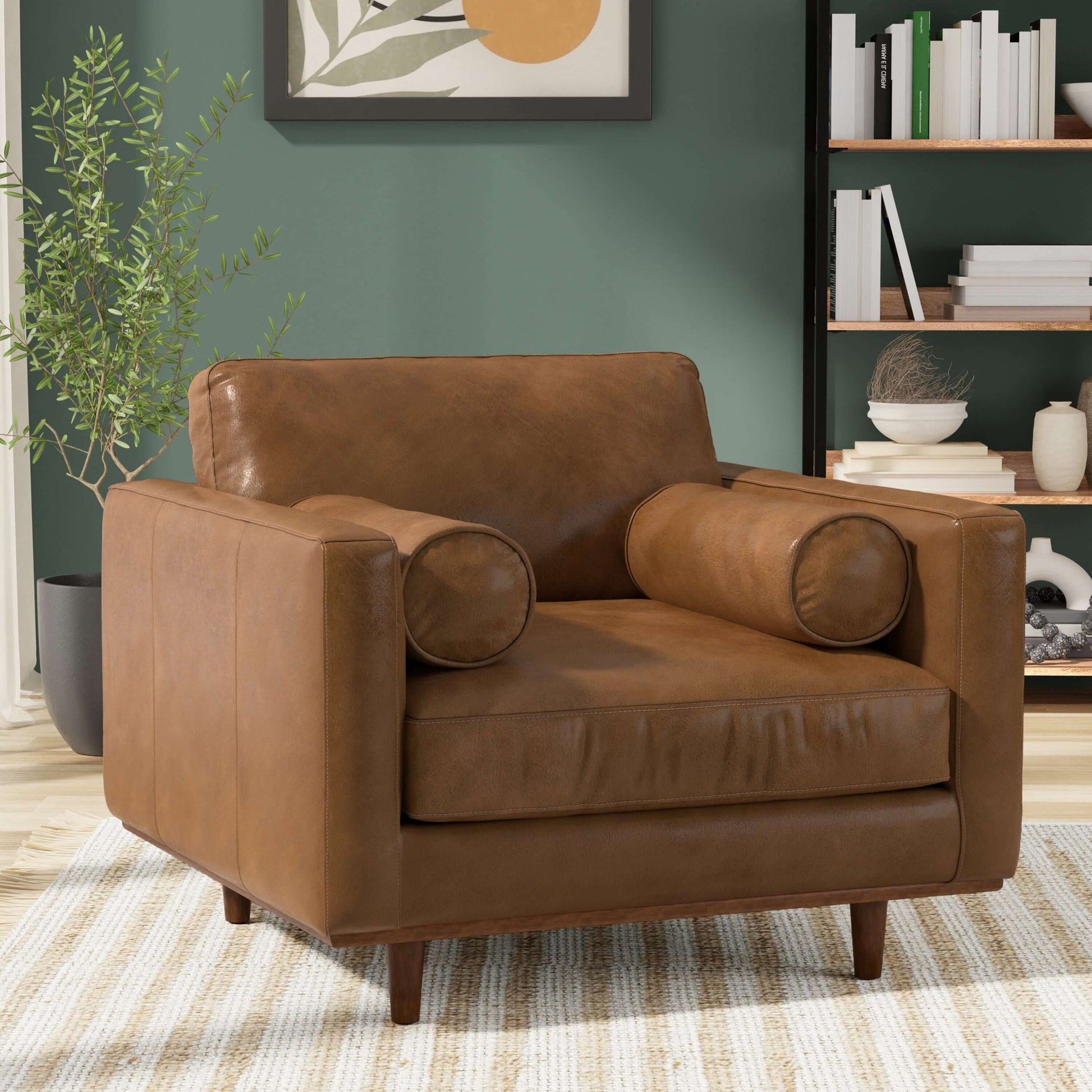 Experience comfort with conscience. The Morrison MCM Top Grain Brown Caramel Leather Armchair brings timeless mid-century design, modern comfort, and sustainability together—crafted for those who care about style and substance.